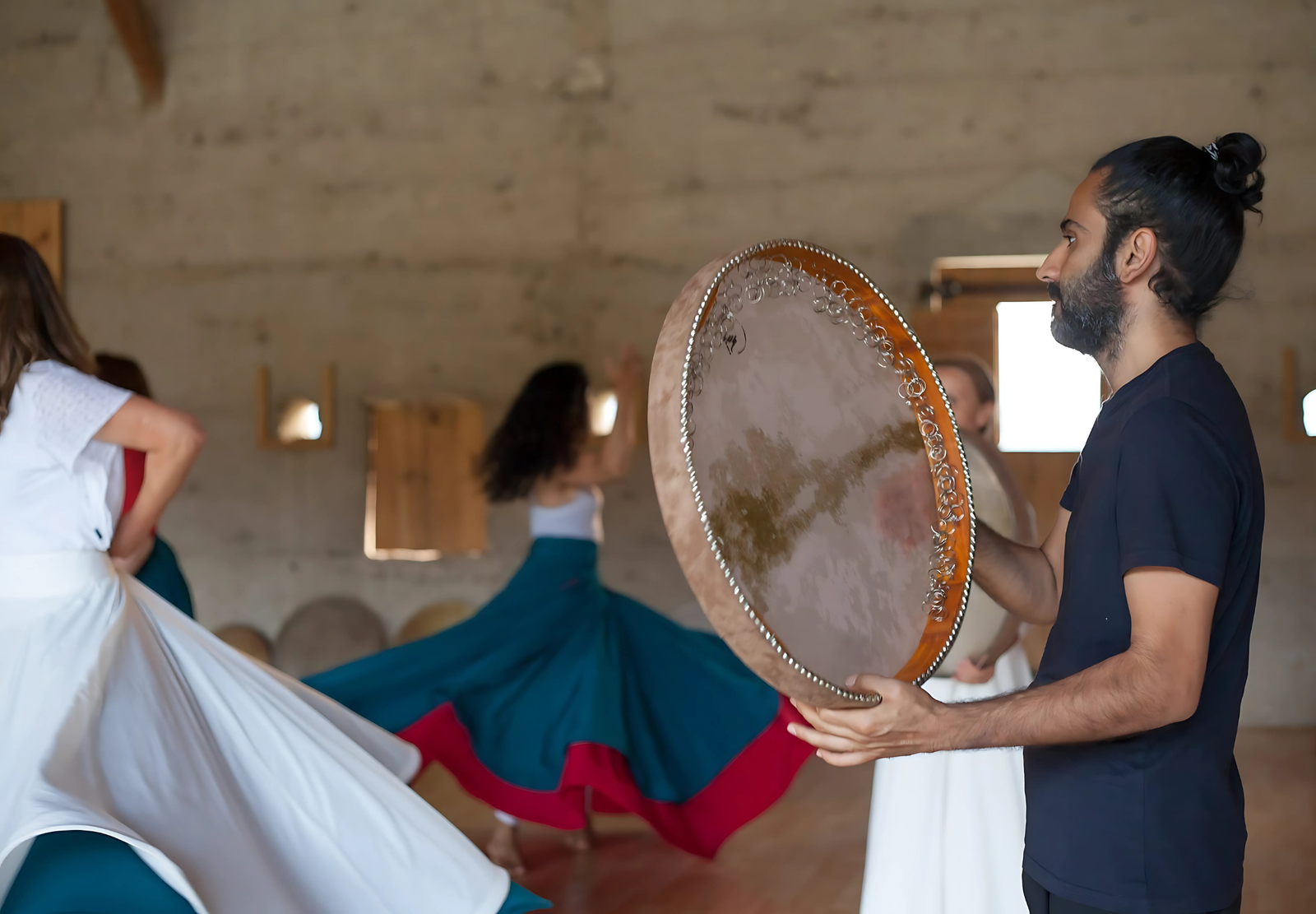 Le temple soufi est avant tout un lieu de retraite, de transmission et de pratique spirituelle. Il ne s’agit pas d’un bâtiment figé dans une architecture codifiée, mais d’un espace vivant, où l’on vient se relier à l’essentiel à travers des pratiques comme le dhikr (récitation des Noms divins), la musique, la poésie, le souffle, et bien sûr, la danse tournante.